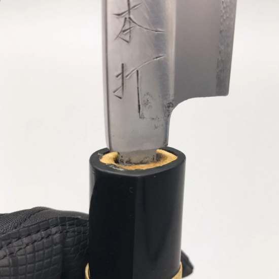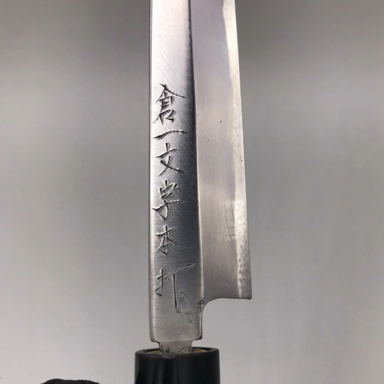 The right side of the blade is engraved with the Japanese characters “Kura Ichimonji Genuine Forged.” Incidentally, knives made by makers or brands with the name "Ichimonji" are generally high-priced.