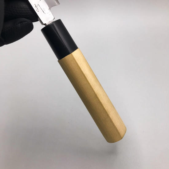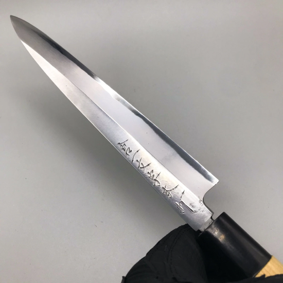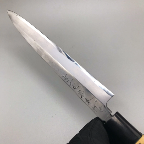This is a carbon steel Yanagiba knife made in Hakata City, Fukuoka Prefecture—one of Japan’s lesser-known but respected knife-making regions.