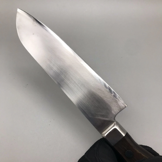 The knife has been sharpened with a whetstone and is already in a good cutting condition. From how it feels in hand and during sharpening, my impression is that it is a stainless steel knife that is neither high-end nor low-quality.