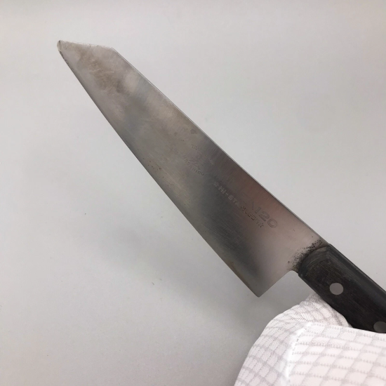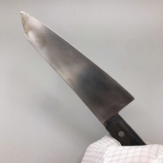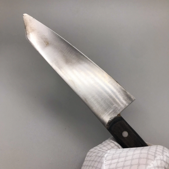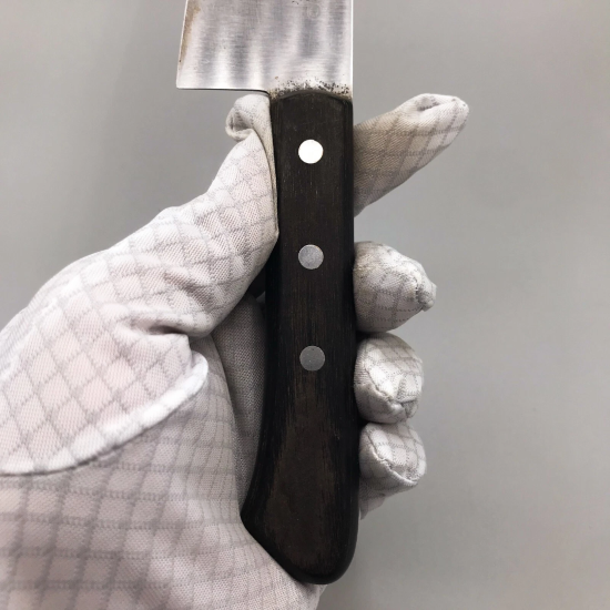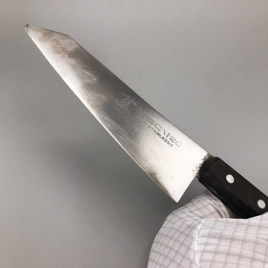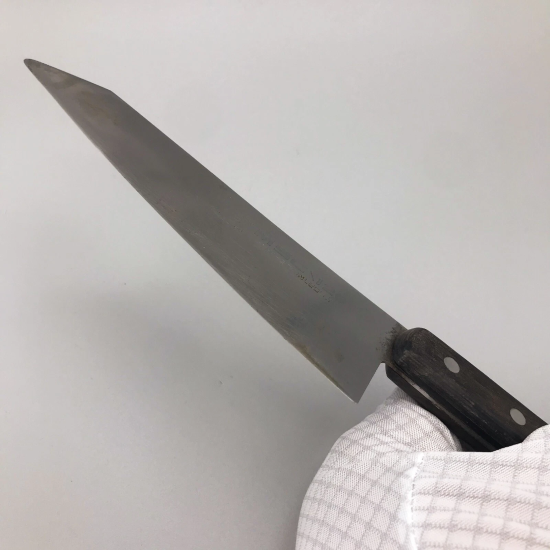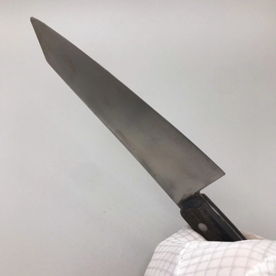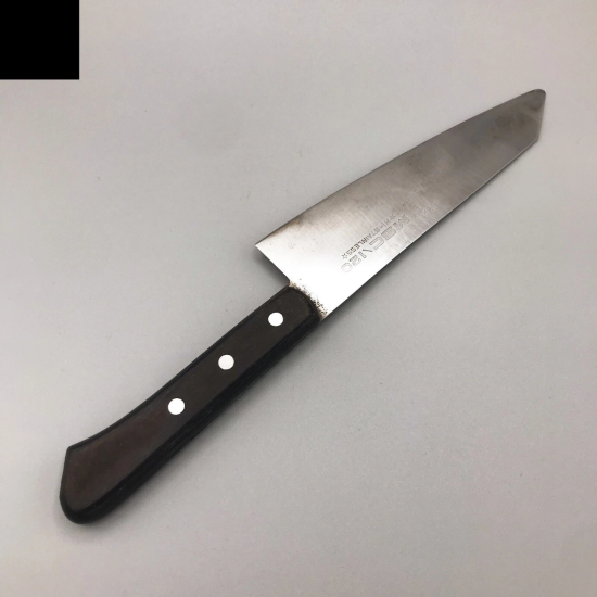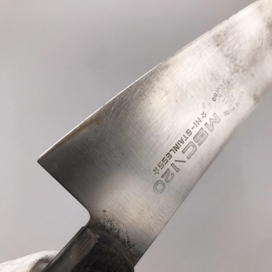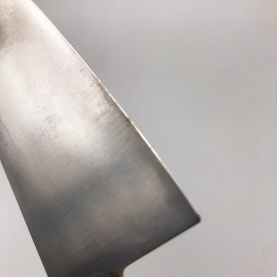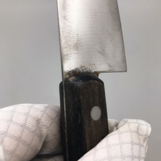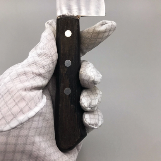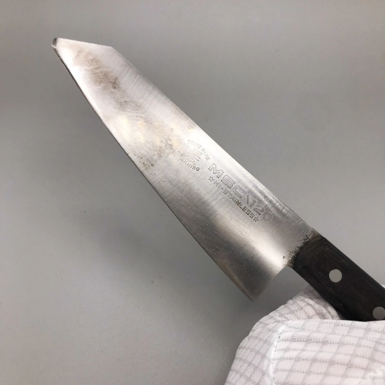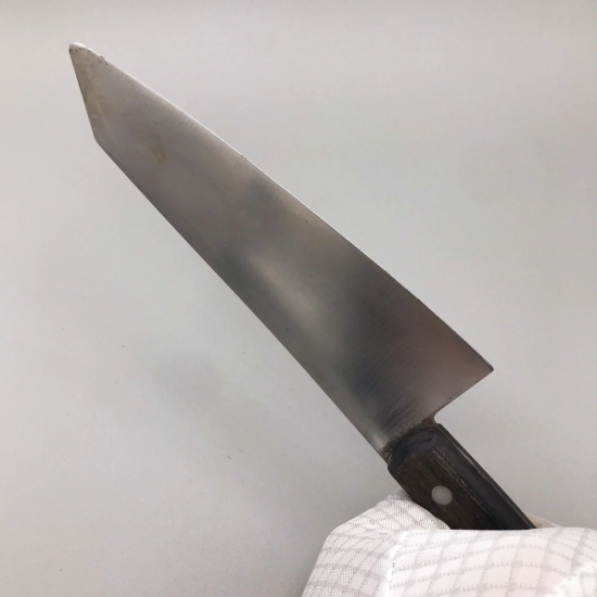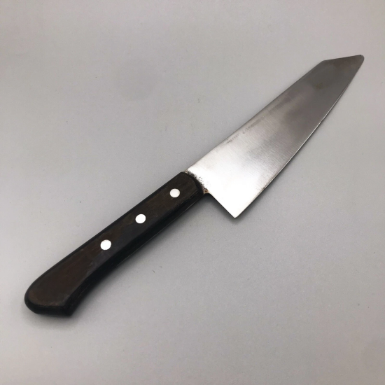 This is a stainless steel Kiritsuke-style Santoku knife made in Seki City, Gifu Prefecture, one of Japan's leading cutlery production areas. It is a very old model that is no longer in production. It was manufactured by Masahiro, a trusted and well-established knife company based in Seki City, Gifu Prefecture. It can be used without any issues after sharpening.