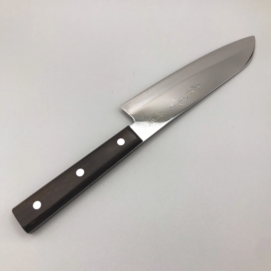 The side of the blade is engraved with “Echizen En'en Tokusen,” which roughly translates to “Echizen continues forever, specially selected.” Echizen is one of Japan’s leading cutlery production areas and is home to the only factory in the world that produces VG10 steel. ChromaX steel is often used in higher-end kitchen knives made in this area.