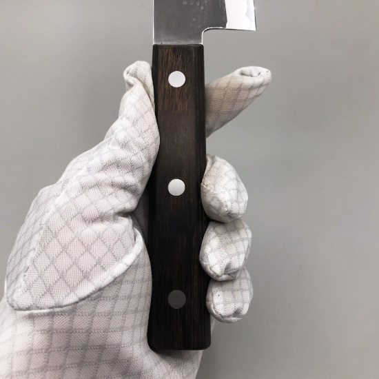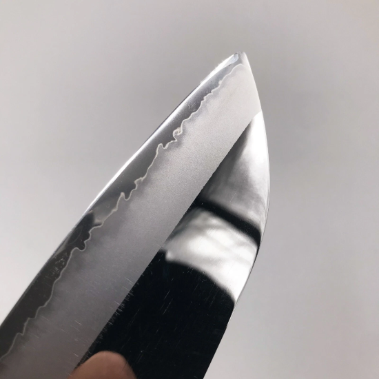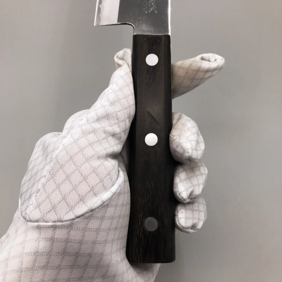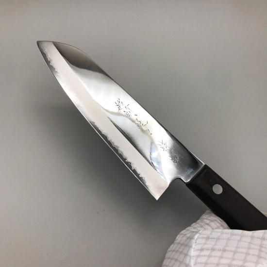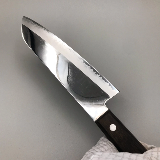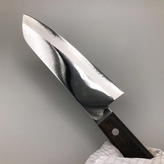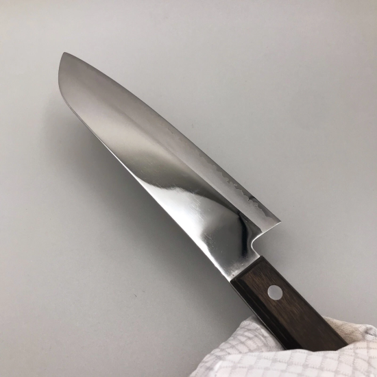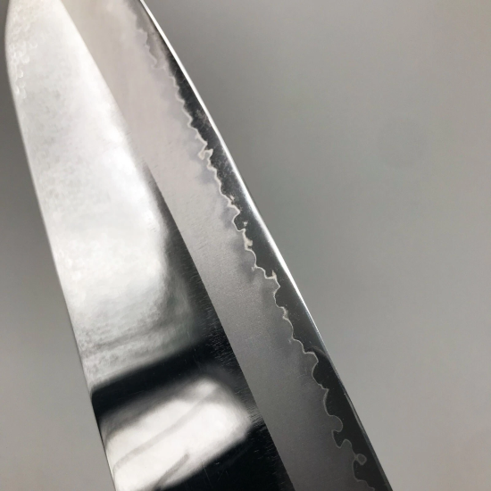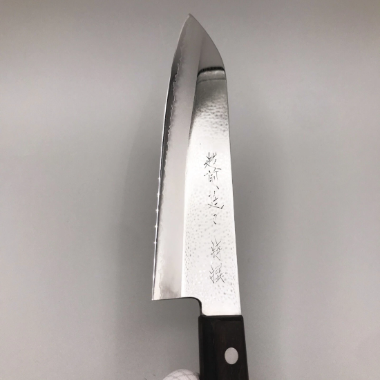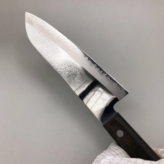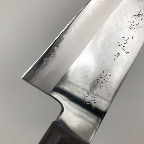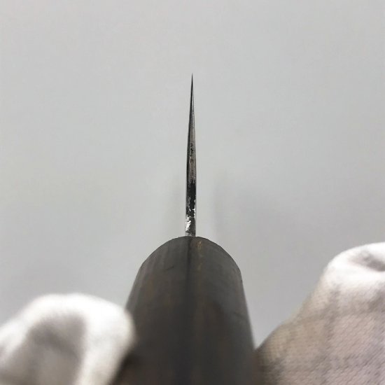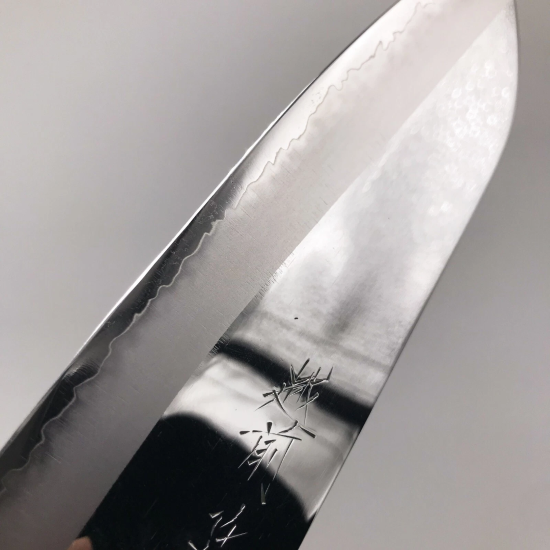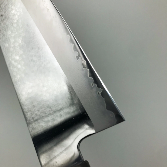 Although I do not know the name of the manufacturer, the fact that it was made in Echizen—and that ChromaX steel is commonly used in high-end knives from this region—strongly suggests its use here. To verify this, I placed a drop of vinegar near the blade edge. Based on the observed reaction and its Echizen origin, I believe this knife is almost certainly made with ChromaX steel.