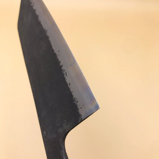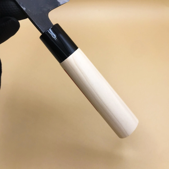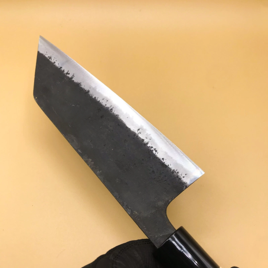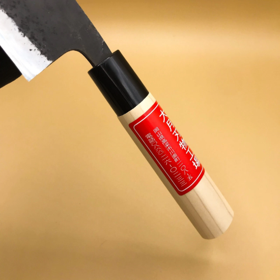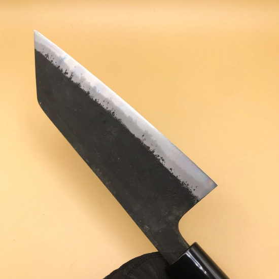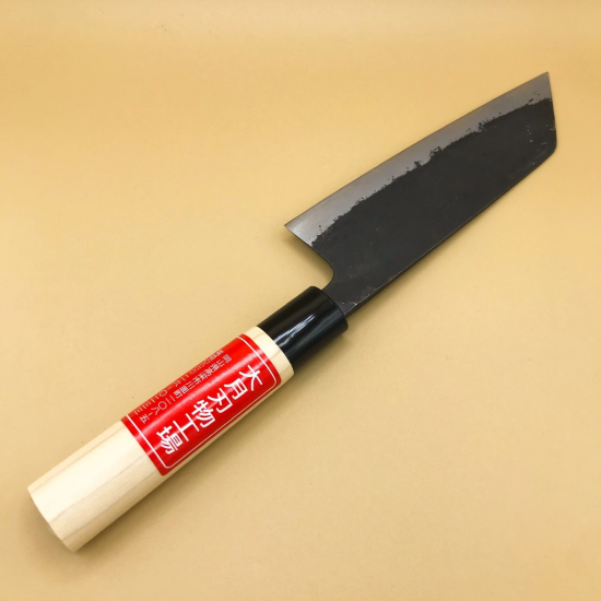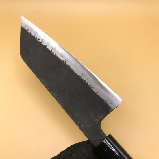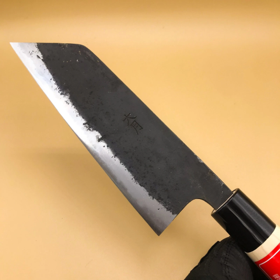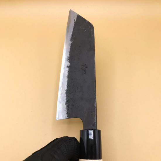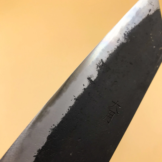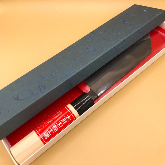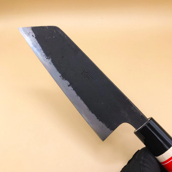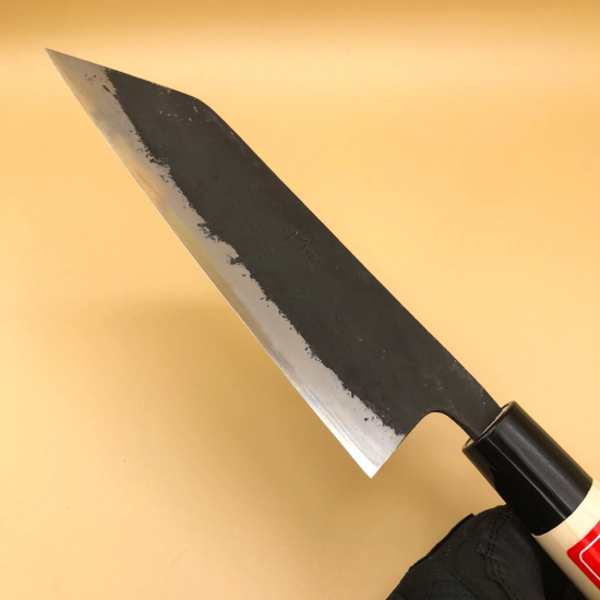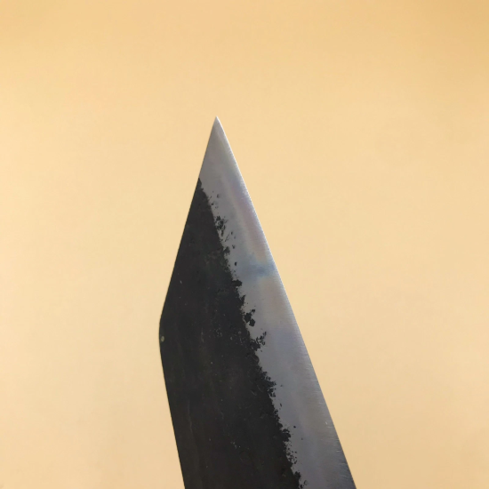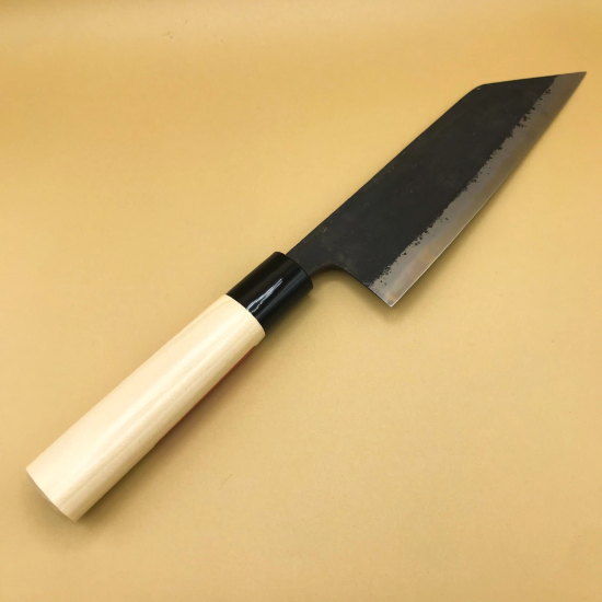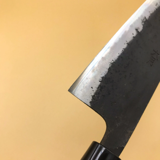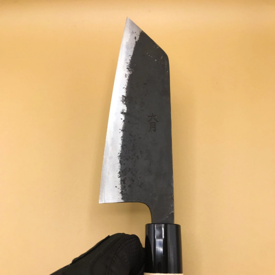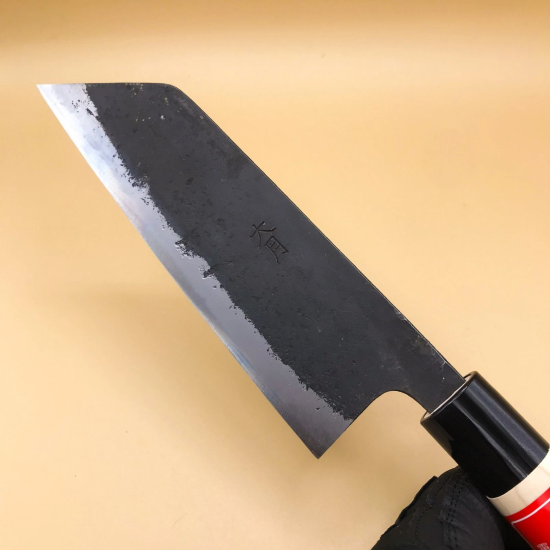This is an all-purpose knife made of blue #2 carbon steel, manufactured by Otsuki, a lesser-known but highly respected knife maker in Japan. It is classified as a Bunka knife.