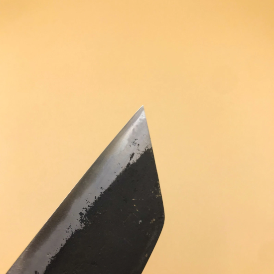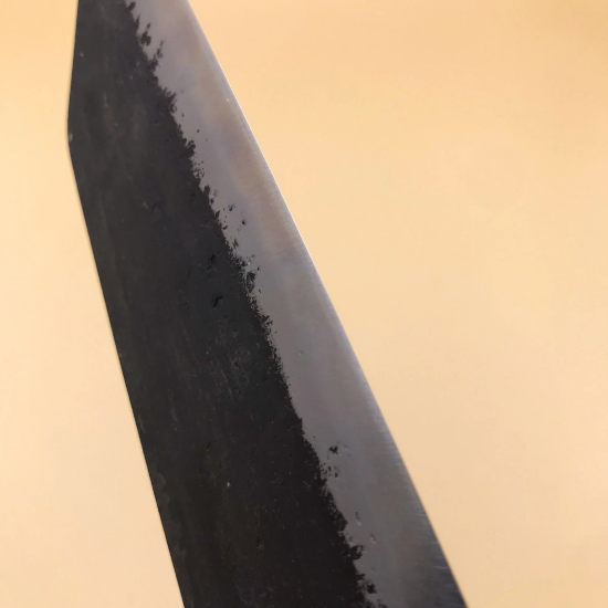 Kurouchi is the name of the manufacturing process. While ordinary kitchen knives are polished to a beautiful silver color, Kurouchi is a process that leaves the surface blackened during manufacturing without polishing it. There is no difference in sharpness, but it is less noticeable when it rusts. Scratches are also less noticeable. Even if they do get scratches, I find them cool.